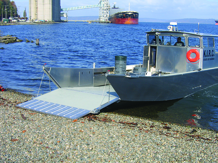 The Landing Craft is a high-performance aluminum vessel designed for seamless equipment, cargo, and crew transport across diverse marine environments. Featuring a spacious foredeck and a wide bow door with electric linear actuators, this heavy-duty workboat enables efficient loading and offloading, making it indispensable for military operations, oil spill response, survey missions, dive support, and fisheries research. Engineered for versatility and reliability, the Landing Craft excels in demanding conditions, ensuring smooth and secure transportation in coastal, offshore, and inland waterways.